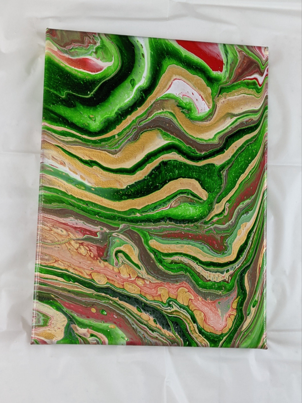 • Original acrylic pour painting done by Neisha Sullivan on a 11" X 14" X 5/8" stretched canvas and finished with 2 coats of gloss varnish.
